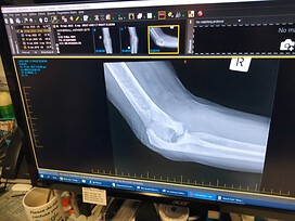 Shortly after I asked a surgeon to scrape and clean my elbows as they were getting painful. The surgeon brought up the scan and actually laughed ‘what’s wrong’ I asked, ‘you have no joints left to scrape and clean’, so that stuffed that idea and I’ve been living without elbow joints ever since. A little while ago I asked my GP what the bone was sticking out the back of my arm above my elbow 'that's the olecranon, but its not supposed to be there' was his answer.