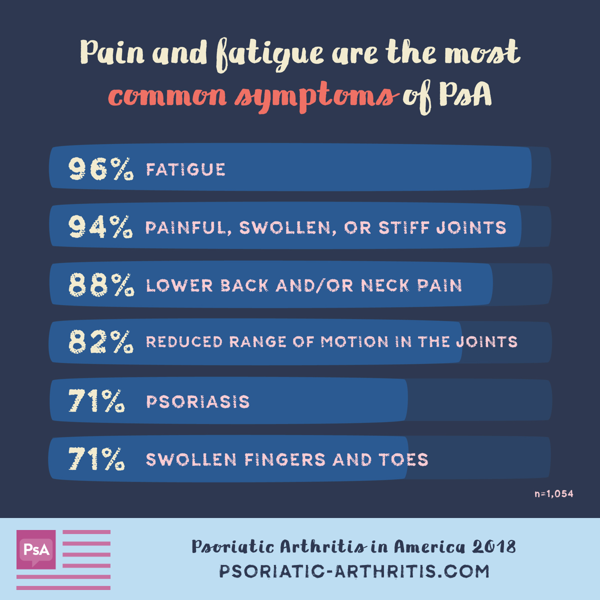 People with PsA often describe fatigue and pain as their most commonly experienced symptoms. These kinds of physical symptoms can lead to a lack of energy, productivity, and motivation.