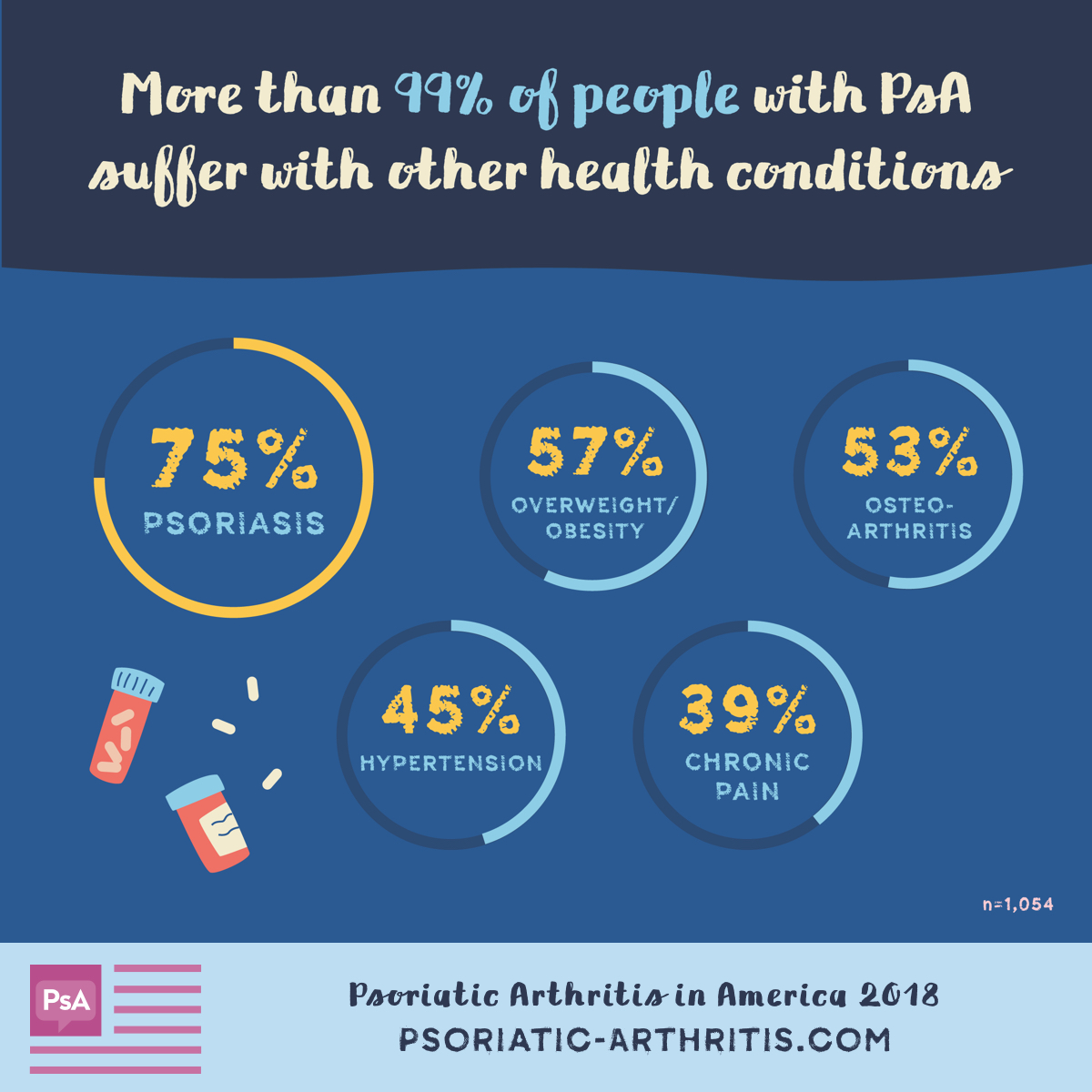 In addition to experiencing fatigue and pain, over 99% of people surveyed told us that they were diagnosed with another health condition in addition to PsA. Having multiple health conditions can aggravate symptoms and make living with PsA even harder to manage.