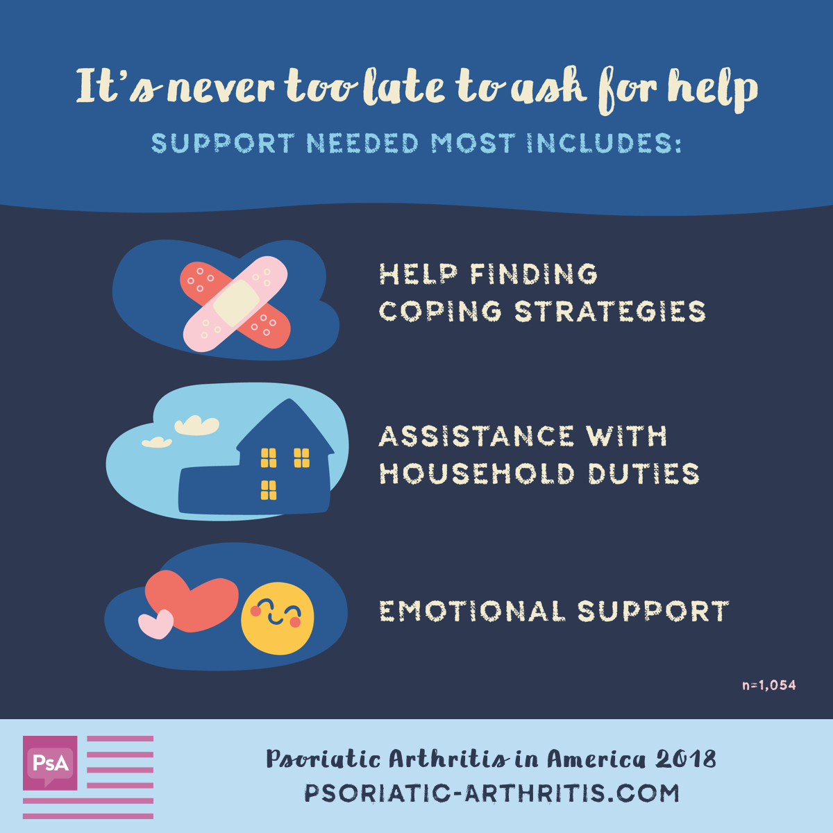 It helps people with PsA feel less alone. Also, help from others may allow people with PsA to conserve their precious energy.